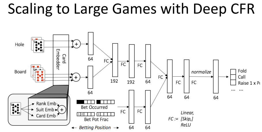 所以,作者提出了 CFR 的一种变体 Deep CFR,它使用了神经网络函数近似,而没有使用基于 bucketing 的抽象。Deep CFR 是首个可以扩展至大型博弈的 non-tabular 形式的 CFR,并且使得 CFR 在几乎没有领域知识的设置下实现部署。