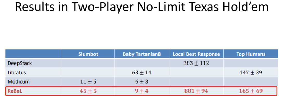 最后,作者提出了一种新型 ReBel 算法,它在训练和测试时结合强化学习和搜索,并为缩小完美信息博弈和不完美信息博弈研究的差距迈出了关键一步。