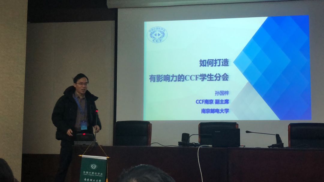 随后,孙国梓为分会会员进行题为“如何打造有影响力的CCF学生分会”的CCF学生分会文化培训。深入浅出的介绍了CCF的平台构成及“由会员组成、靠会员治理、为会员服务”的分会文化,并就如何打造有影响力的学生分会进行了详细的讲解。