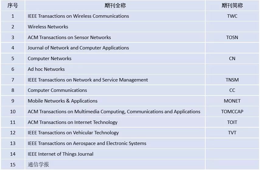 清华将CCF定为B类的TCOM期刊定为了A类;TCOM是IEEE出版的有关通信领域理论和实验进展的高质量期刊,TCOM的范围很广,涉及无线通信、有线通信和光通信等多个领域。