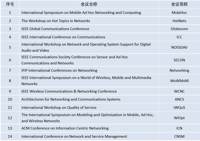 清华将CCF定为B类的CoNEXT、MobiSys、IMC、IPSN、SenSys、CoNEXT六个会议定为了A类。