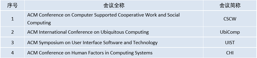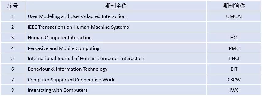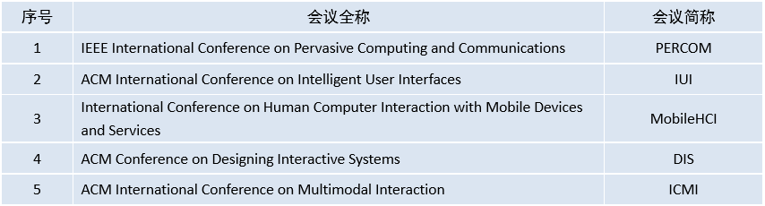 在人机交互与普适计算方向,清华推荐的A类会议4个, B类会议5个;A类期刊2个,B类期刊8个。