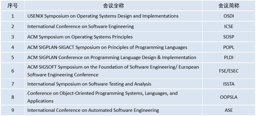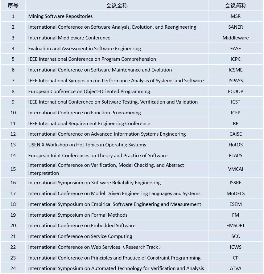 在系统软件与软件工程方向,清华推荐了9个A类会议,24个B类会议;A类期刊3个,B类期刊12个;