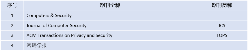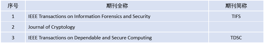 清华和CCF推荐的A类期刊相同,清华的B类期刊中没有CCF推荐的Designs、 Codes and Cryptography,而加入了国内期刊《密码学报》。