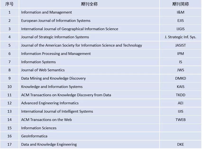 CCF A类会议5个,B类会议11个;C类会议12个。A类期刊4个,B类期刊13个,C类期刊14个。