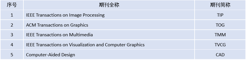 清华和CCF推荐的A类会议相同。清华把CCF定为B类的TMM、CAD期刊定为A类;在B类期刊中增加了计算机辅助设计与图形学学报、中国图像图形学报、图学学报会三个期刊。