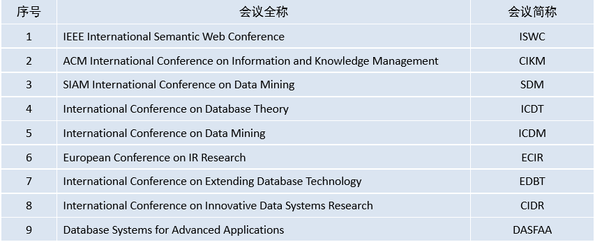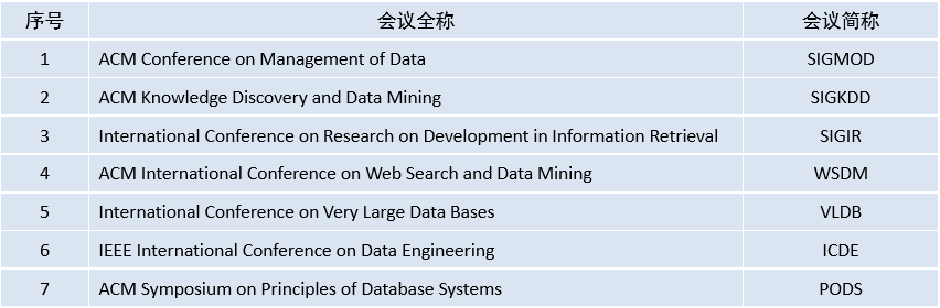 在数据库与数据挖掘方向,清华推荐了7个A类会议,9个B类会议;A类期刊4个,B类期刊17个。