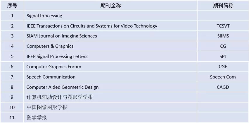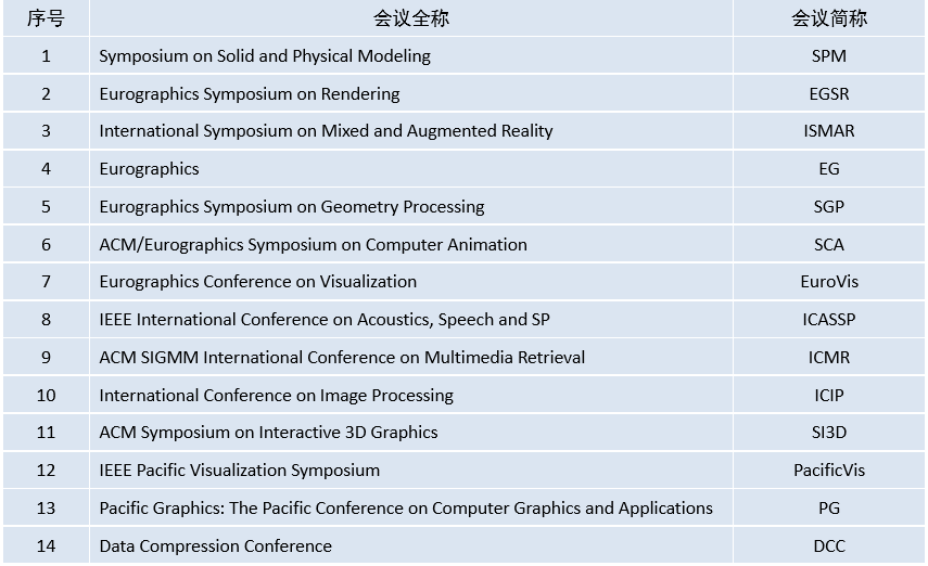 在计算机图形学与多媒体方向,清华推荐了4个A类会议,14个B类会议;A类期刊5个,B类期刊11个。