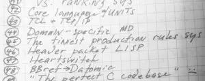 首先,准备一本笔记本和一支笔,为开发有意思的开源项目写下 100 种想法即可。这些有关项目的想法可以涉及各种主题,深度和质量。我想过的有,野生语言的创意、已有项目的新功能、系统设计、协议、缺损文件、有趣的 forks、代码简化、游戏、原型、论文想法的实现、第二个系统等等。