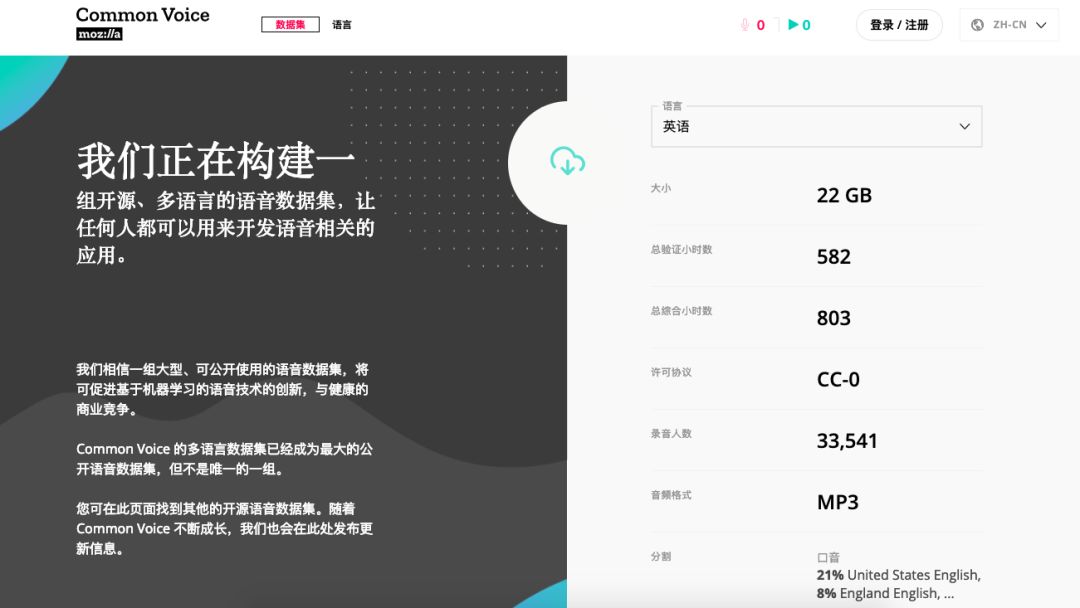2019 年 3 月 1 日,由 Mozilla 基金会发起的 Common Voice 项目,发布新版语音识别数据集,包括来自 42000 名贡献者,超过 1400 小时的语音样本数据,涵盖包括英语、法语、德语、荷兰语、汉语在内的 18 种语言。