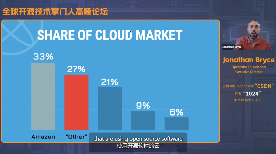 对于开源领域现状,他表示,“开源已经成为被广泛采用的技术趋势,我们面前还有更多的机会,比如云市场仍有较大的增长机会,获得更大的‘技术蛋糕’。”对于这一机遇,他认为,“如果我们可以将所有技术转移到现代公共和私有云类型的配置中,就有可能获得 20 倍的回报。”