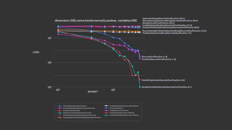 Facebook 研究团队使用了 Nevergrad 实现几个基准测试,来展示特定算法在特定情况下的表现最佳。这些众所周知的示例对应着各种不同设置(多峰或非多峰,噪声或非噪声,离散或非离散,病态或非病态),并展示了如何使用 Nevergrad 来确定最佳优化算法。