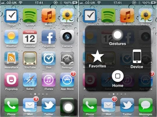好在,苹果提出了一招“曲线救国”的方法——“辅助触控”。在 iOS 操作界面最顶层显示一个虚拟的按键,提供返回主界面等多种功能。