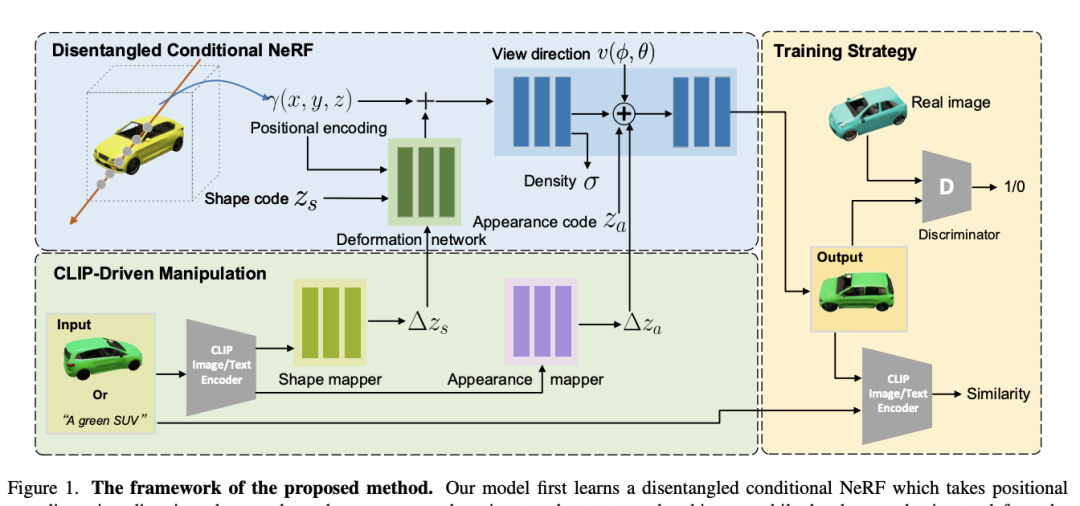 本文提出了 CLIP-NeRF,一种用于神经辐射场 (NeRF) 的多模态 3D 对象操作方法。通过利用最近的对比语言图像预训练(CLIP)模型的联合语言图像嵌入空间,本文提出了一个统一的框架,允许以用户友好的方式使用短文本提示或示例图像操作 NeRF。此外,本文提出了一种逆优化方法,该方法可以将输入图像准确地投影到潜在代码以进行操作,从而能够对真实图像进行编辑。