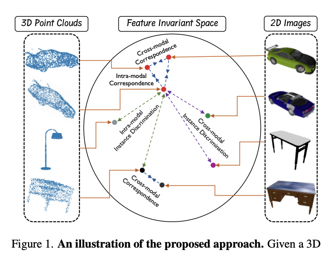 本文提出了 CrossPoint,这是一种简单的跨模态对比学习方法,用于学习可迁移的 3D 点云表示。它通过最大化点云和不变空间中相应渲染的 2D 图像之间的一致性来实现对象的 3D-2D 对应,同时鼓励对点云模态中的变换保持不变。本文的联合训练目标结合了模态内和模态之间的特征对应关系,从而以自我监督的方式集成了来自 3D 点云和 2D 图像模态的丰富学习信号。实验结果表明,本文的方法在包括 3D 对象分类和分割在内的各种下游任务上优于以前的无监督学习方法。