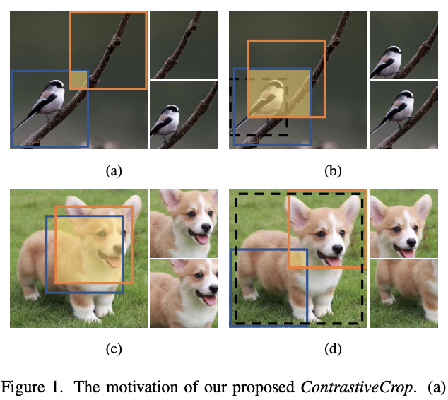 对于高性能连体表示学习,关键之一是设计好的对比对。大多数以前的工作只是简单地应用随机采样来对同一图像进行不同的裁剪,这忽略了可能降低视图质量的语义信息。本文提出 ContrastiveCrop,它可以有效地为连体表示学习生成更好的作物。值得注意的是,本文方法仔细考虑了用于对比学习的正对,而额外的训练开销可以忽略不计。作为一个即插即用且与框架无关的模块,ContrastiveCrop 在 CIFAR-10、CIFAR-100、Tiny ImageNet 和 STL-10 上持续将 SimCLR、MoCo、BYOL、SimSiam 的分类精度提高 0.4% ∼ 2.0%。