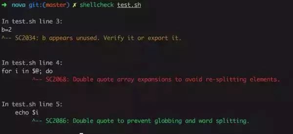 5.shellcheck:shell脚本静态检查工具,能够识别语法错误以及不规范的写法。