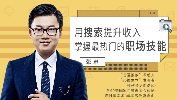 现在,张卓老师为你带来12堂《用搜索提升收入,掌握最热门的职场技能》,帮你快速找到现成答案,收获更轻松高效的人生。