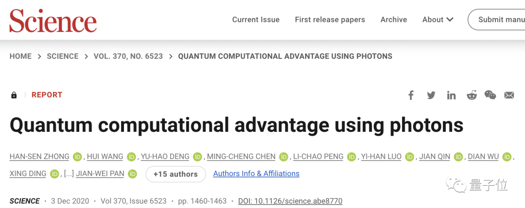 2020年12月4日,潘建伟团队构建的76个光子的量子计算原型机“九章”问世并刊登在Science上,陈明城正是共同一作之一。