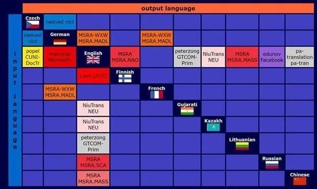 图片来自大赛网站,横向为源语种,纵向为目标语种