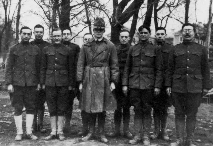 (图注)1918 年阿伯丁试验场中身穿制服的数学家,最右是维纳(图源:MIT 博物馆)。