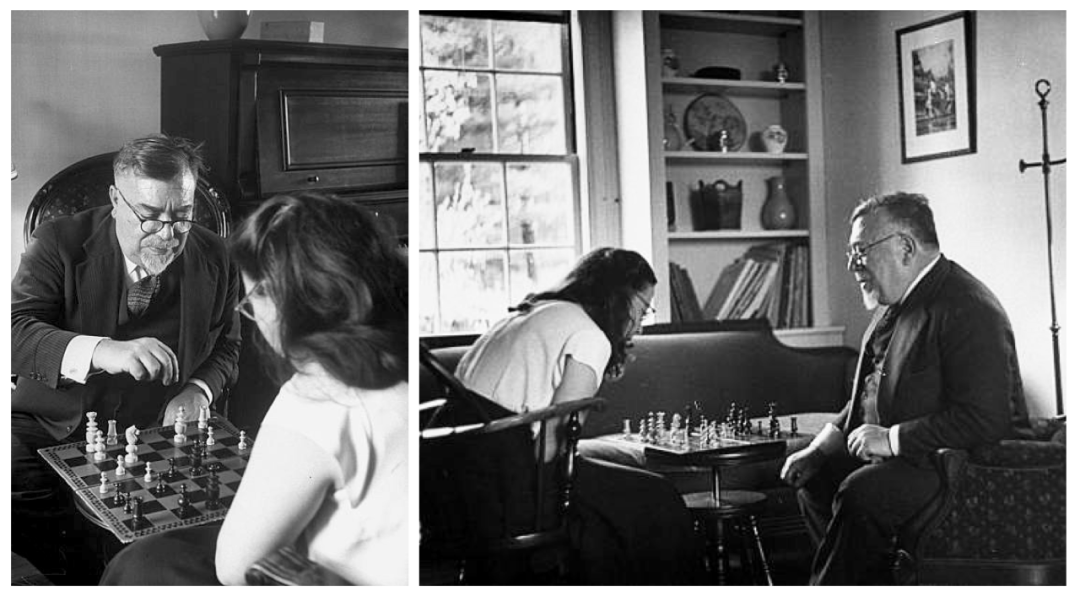 维纳与女儿 Peggy 在下国际象棋(图源:MIT 博物馆)