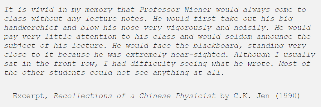 当然,维纳教授的古怪也增添了他在 MIT 的传奇色彩: