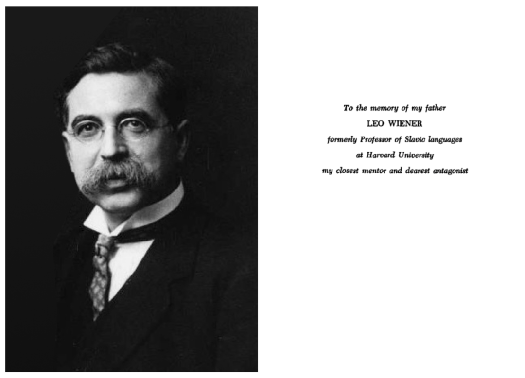 左图:Leo Wiener(图源:MIT 博物馆)。右图:维纳在其畅销书《人有人的用处》(1950) 扉页处提及父亲 Leo。