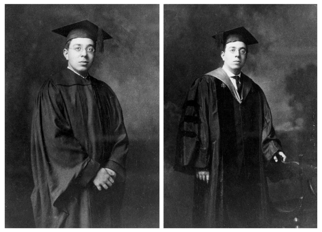 1909 年维纳的塔夫茨大学毕业照和 1913 年哈佛大学毕业照(图源:MIT 博物馆)