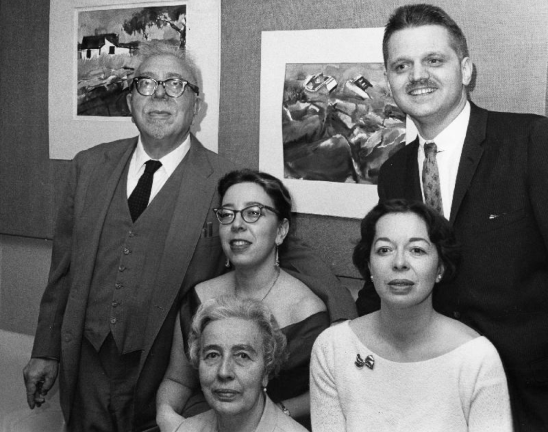维纳和妻子 Margaret、女儿「Peggy」、Barbara,以及女婿 Gordon Raisbeck(图源:MIT 博物馆)。