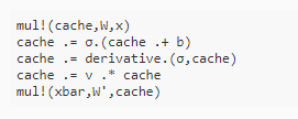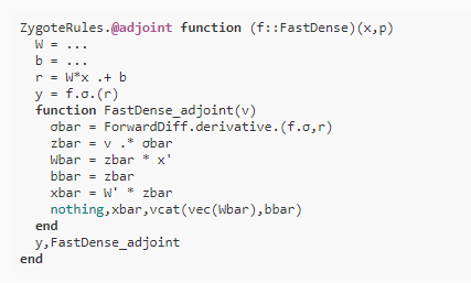 开发人员的长期目标是将这种循环编译器的优化方法扩展到自动产生pullbacks。但这种以编译器为中心的方法已经被用于实现的便利性:虽然我们仍然需要手写梯度,但我们不需要对它们进行手工优化。