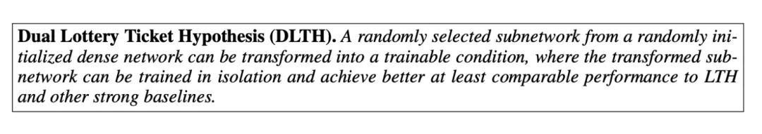 研究者受LTH所启发,探索了其对偶问题并提出对偶彩票假说DLTH:给定随机初始化的网络,其随机挑选的子网络可以被转换成彩票子网络,并得到与LTH找到的彩票子网络相当甚至更好的准确率。