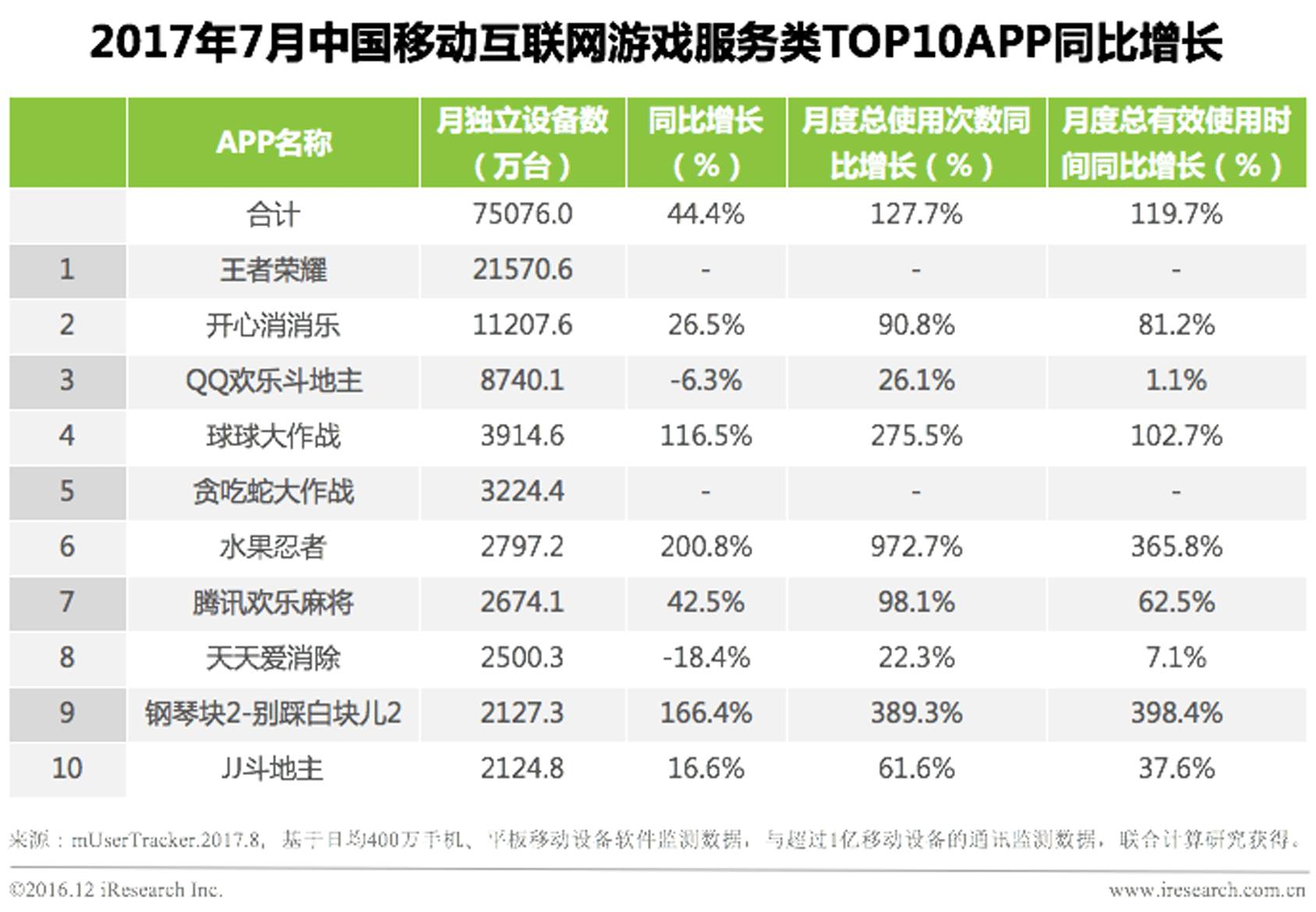 游戏服务类:王者荣耀和贪吃蛇大作战为行业新晋黑马,水果忍者和钢琴块2迅增