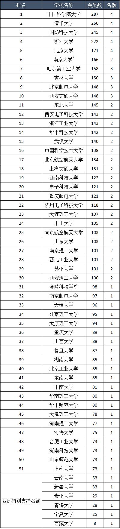 附:2018年度“CCF优秀大学生奖”推荐名额分配表