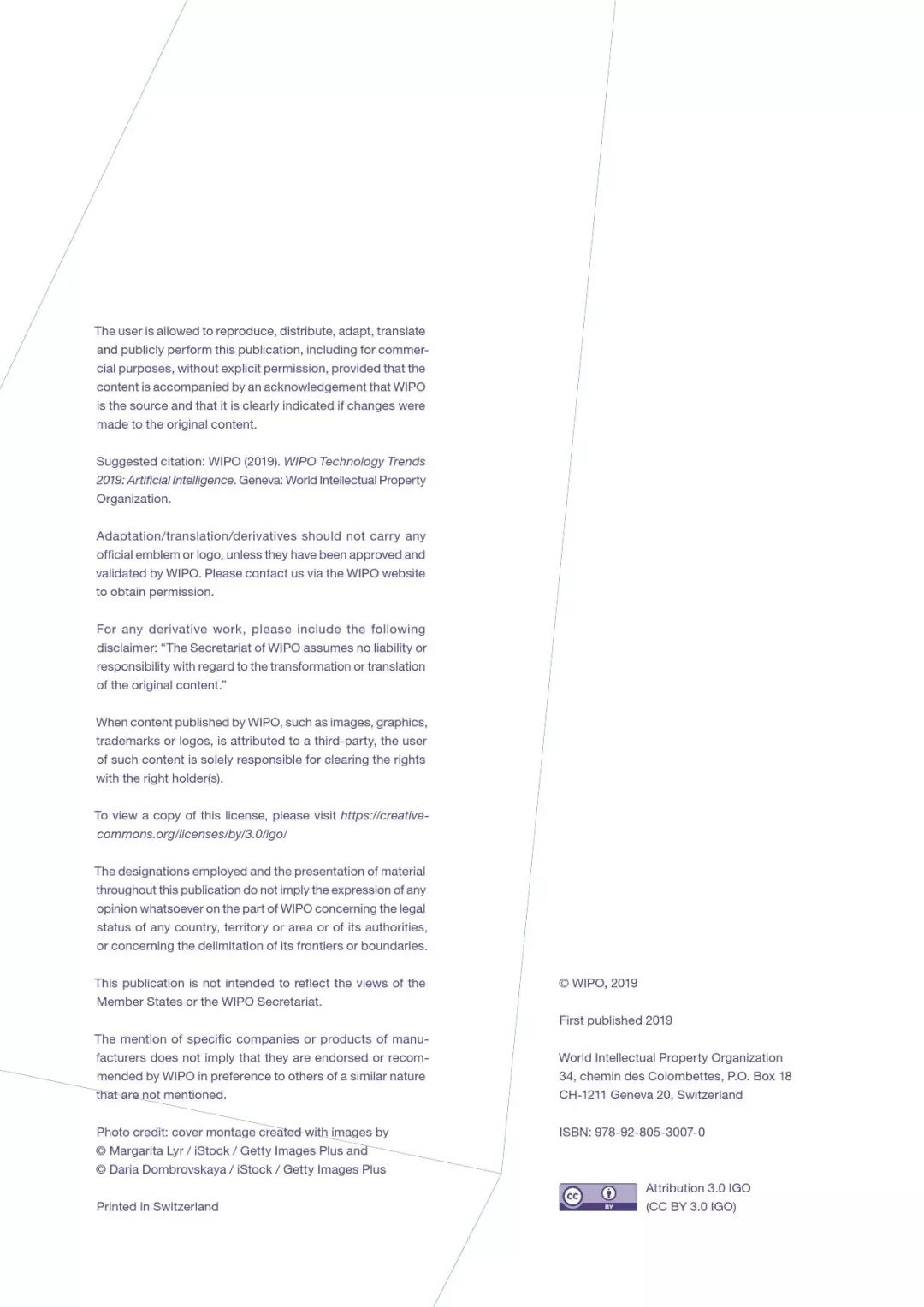 联合国世界知识产权组织WIPO发布了首份《2019技术趋势——人工智能报告》(WIPO Technology Trends 2019 – Artificial Intelligence)。报告显示,自20世纪50年代人工智能出现以来至2016年,科研人员已提交超过34万份人工智能发明专利申请,发表的科学出版物超过160万篇(部)。而这其中的专利超过半数是2013年以后公开的。其中在国别专利总申请量方面,美国、中国、日本排在前三位。