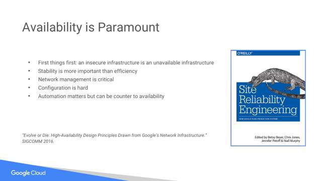 “不演变就完蛋:从谷歌的网络基础设施获得的高可用性设计原则。”