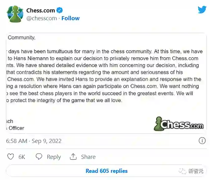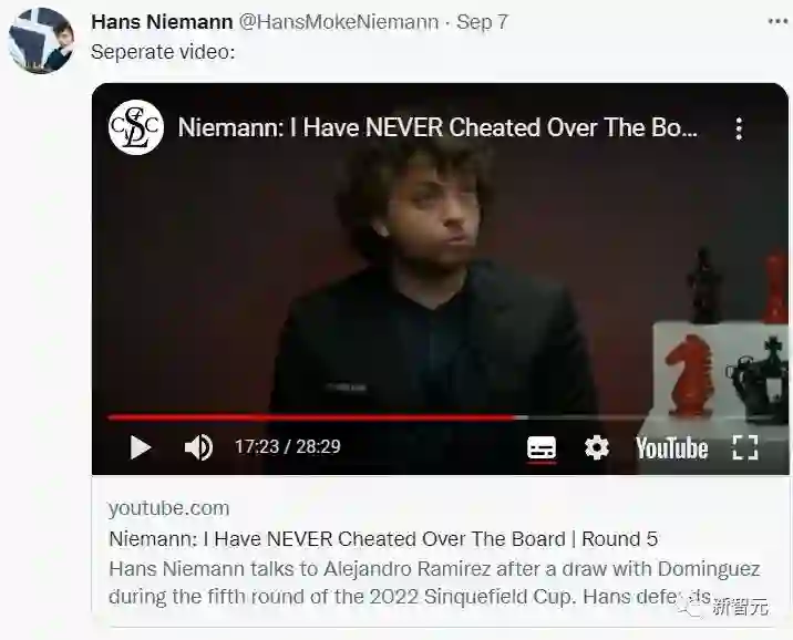 不过尼曼也确实是有前科,特级大师中村光(Hikaru Nakamura)直播时透露,尼曼此前曾因在线比赛作弊而被Chess.com取消比赛资格。