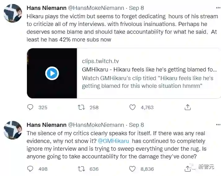 尼曼也在推特上和中村光接连对线,认为他不过是在蹭自己的热度,让他拿出证据来。