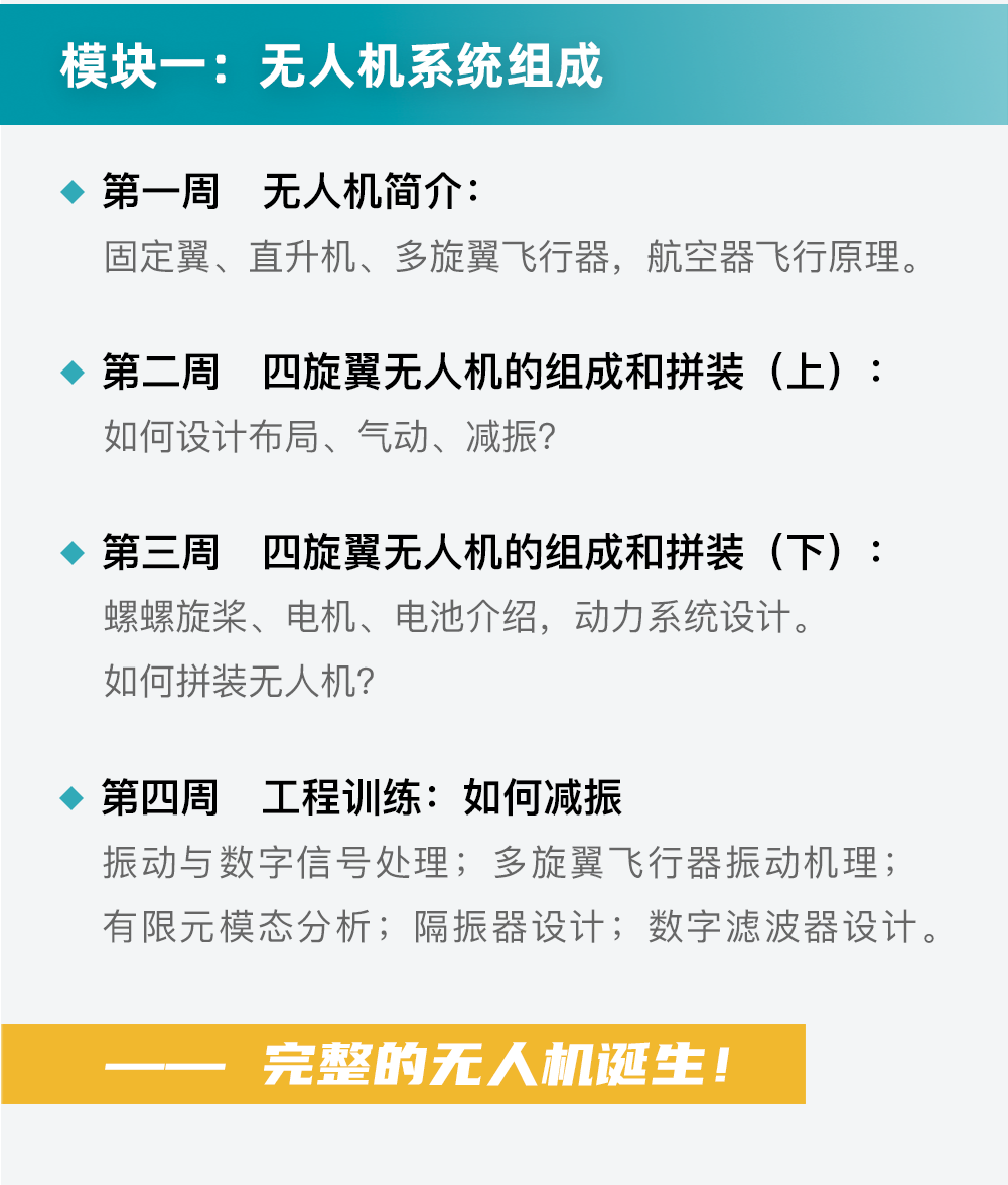 课程由北京航空航天大学无人机专家设计和指导,与真实的科学研究和工程开发接轨。有以下六大优势: