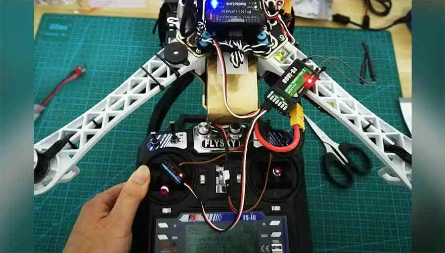 学员学完课程第一、二模块,将无人机组装好,在室内飞行时,没有GPS信号,为定高飞行模式,需要用遥控器保持飞机的水平位置。学完第三、四模块后,室内视觉定位下飞行,要严格按照课程指导进行。