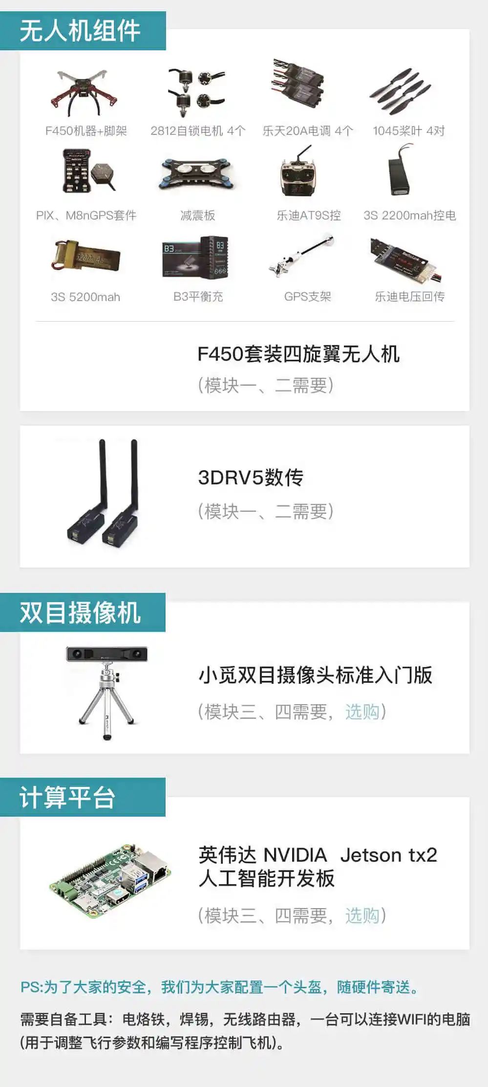 但是学员自行购买的无人机等设备与以上型号不符,我们则不提供硬件方面的答疑。