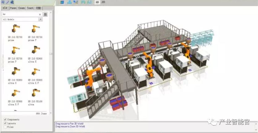 通常一个智慧工厂的组件大约在 5 万到 10 万个(不含重复组件),大量重复使用的模型可以参数化并形成组件库,可以更快捷的变更组件和规划布局,大幅减少工程师 CAD 建模和增加运动算法的时间。