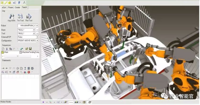 智慧工厂的离线编程系统非常复杂,并非只对一个细胞单元的机器人单体做轨迹路径规划,通常一条生产线由多个机器人,工装夹具上下料系统,传送带,AGV,人员等有机构成,这些组件的运动都需要编程,每个组件编程后还需要互相建立通讯联接,这样才能让整个智慧工厂有序运转起来,智慧工厂虚拟仿真能模拟所有组件的运动,对离线编程模块进行数据反馈,找出不匹配的因子加以修正。