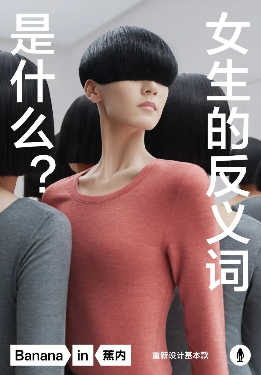在女性营销上,不同于市面上千篇一律的讲故事形式,蕉内反其道而行,时尚高级感的画风,让人眼前一亮。