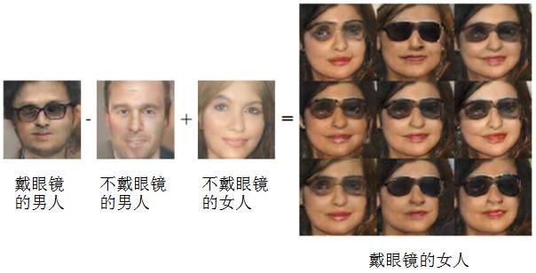 有这样一种逻辑运算:戴眼镜的男人-不戴眼镜的男人+不戴眼镜的女人=?经过简单的推理,我们可以大致推断出答案应该是:戴眼镜的女人。如果是计算机去实现又会是怎样的呢?(见图5)