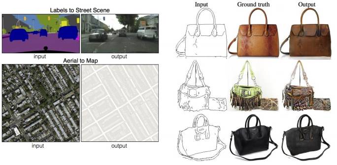 这类的工作与上一个应用有些类似,不同点在于图像转译有更为明确、直接的应用,例如,根据卫星图像绘制地图,街景还原,材质填充等。在这类应用问题上GAN的表现效果见图3。