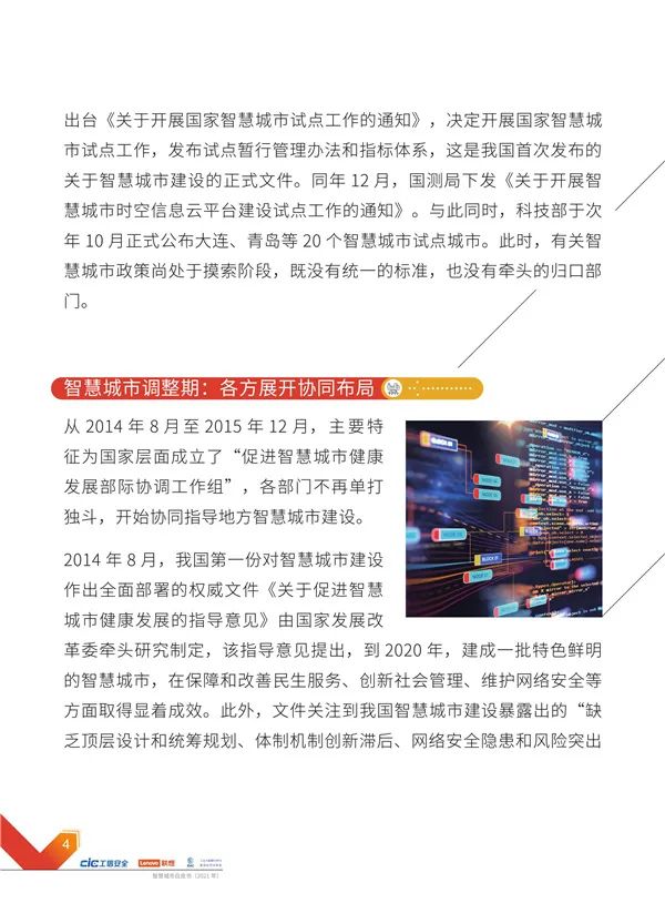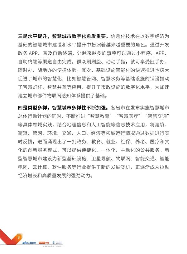 近日,由国家工业信息安全发展研究中心、联想集团、中国产业互联网发展联盟、工业大数据分析与集成应用实验室共同编制的《依托智慧服务,共创新型智慧城市——智慧城市白皮书(2021年)》(以下简称“白皮书”)正式发布。本书提出一系列智慧城市建设的新理念、环境友好的新型智慧城市提供参考。