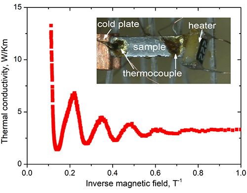 众多周知,金属是电的良导体,同时也是热的良导体。这是因为在电子弹性散射的理想情况下,电导率和热导率互成比例,二者满足Wiedemann-Franz (WF) 定律。该定律所描述的热和电的输运关系是朗道费米液体的基本性质之一,但是其在拓扑半金属体系中的适用性仍然不明确。拓扑半金属的电输运测量,尤其是电导率的量子振荡,是理解该类材料拓扑电子物性的关键手段。相比之下,很少有研究者会尝试测量金属或半金属体系的热导率量子振荡。其中一个重要原因是,基于电导率的测量结果和 WF定律,我们可以简单地估计出热导率量子振荡。其通常是非常微弱并难以测量。因此,热导率的量子振荡测量一般被认为既困难也没有太大物理意义和必要性。