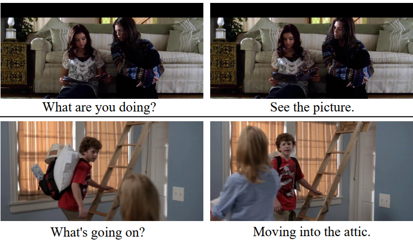 基于上述视觉特征在对话中的必要性,以及当前多模态对话数据集缺失的现状,本文构造了一个大规模多模态对话数据集 OpenViDial。OpenViDial 中的数据来自电影与电视剧,使用 OCR 从视频中抽取出对话文本,并配以当前对话所在的图像,因此,每一句话都有相应视觉背景,最终形成包含百万余条句子的大规模多模态对话数据集。