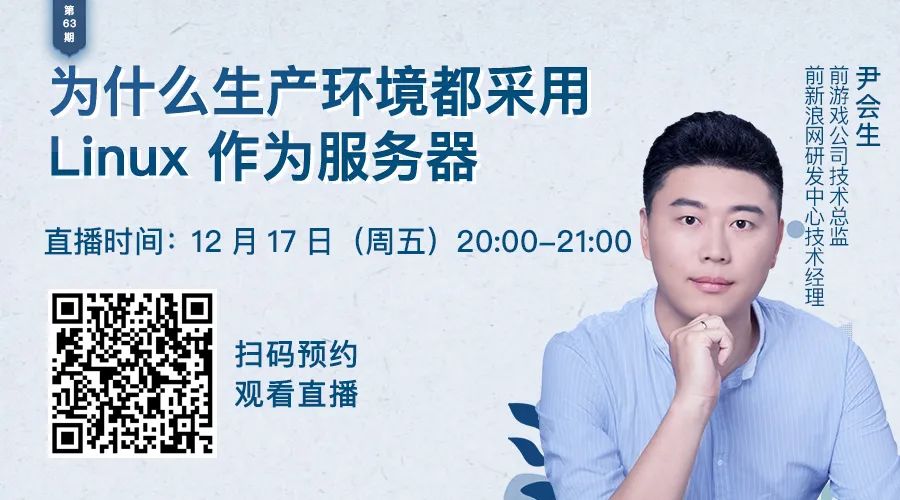 今晚 8 点,前游戏公司技术总监、前新浪网研发中心技术经理尹会生将直播分享「为什么生产环境都采用 Linux 作为服务器」,为你讲解其中的原理。